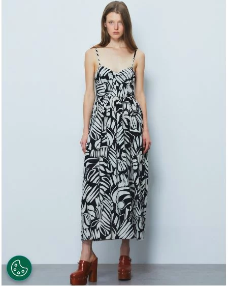 Este VESTIDO LARGO DE TIRANTES BUSTIER de Sfera que está compuesto 100% de algodón será la prenda ideal para esos días de mucho calor, gracias a su delicado material te hará sentir cómoda y segura. Sus colores son vibrantes: negro y blanco. Estos colores ayudan a darle un toque de elegancia a tu look, además de transmitir tu autenticidad durante cualquier evento o plan que desees realizar.