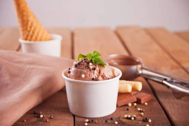 Pero lo que realmente hace que este helado chocolate sea especial es el toque final: una generosa cantidad de chocolate triturado esparcido por encima. Este chocolate no solo añade un delicioso crujido a cada cucharada, sino que también complementa perfectamente el sabor a chocolate del helado, creando una experiencia verdaderamente indulgente. Además, el chocolate triturado puede adaptarse según tus preferencias, permitiéndote elegir tu barra de chocolate favorita o incluso experimentar con diferentes sabores para personalizar aún más esta delicia.