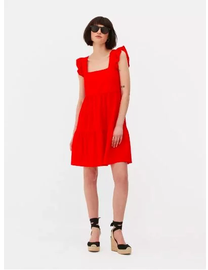 Para complementar tu look puedes usar un vestido de Primark, entre esos el Vestido corto a capas, con vuelo y volantes de color rojo, debido a su tonalidad y estilo permitirá que tu look sea cómodo pero sofisticado para cualquier lugar al que asistas. Además, algo infaltable será tu autenticidad.