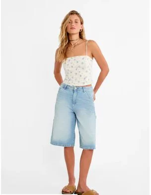 Puedes complementar este top con una Bermuda jort denim carpenter de Stradivarius a un precio de 25,99 Euros y su número de referencia: 1383/364/701 y unas sandalias planas hebilla a un precio de 25,99 Euros y su número de referencia: 9258/370/102. Será la combinación adecuada para deslumbrar con tu belleza a cada lugar al que vayas. Definitivamente será un look fresco, cómodo y con mucho estilo.