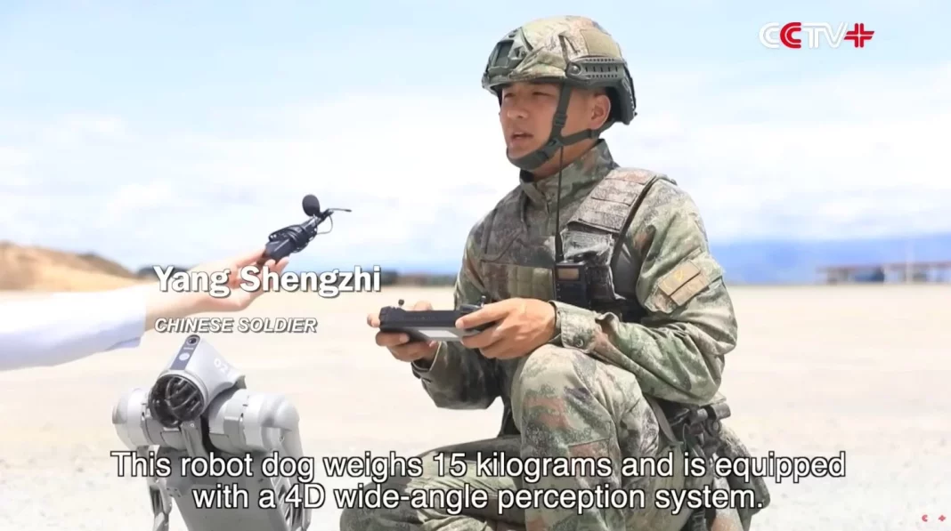 Los soldados controlaron uno de estos perros robot, de aproximadamente 15 kilogramos, mediante un control remoto. Este dispositivo cuenta con un sistema de percepción de plano ultra gran angular, proporcionando una vista amplia del entorno.