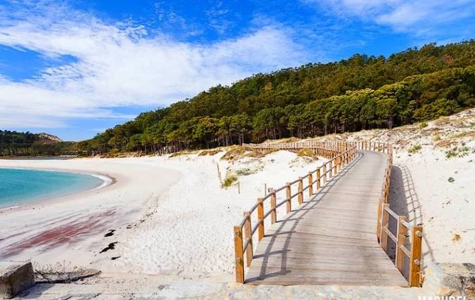Enclavada en el Parque Nacional de las Islas Atlánticas de Galicia, la Playa de Rodas emerge como un paraíso natural virgen, caracterizada por su arena blanca y aguas cristalinas.