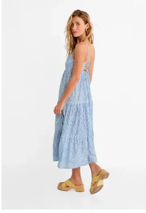 El VESTIDO MIDI TIRANTE ESTAMPADO de Stradivarius es sin duda una prenda muy cómoda, debido a sus características: Vestido fluido midi de escote recto y tirantes finos con detalle de abalorios. Espalda descubierta ajustable con cordones y lazadas.