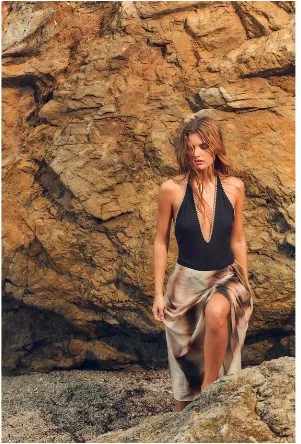 Con su color tabaco, esta falda se convertirá en tu favorita combinándola con un BAÑADOR HALTER PESPUNTES de color negro a un precio de 29,95 Euros y podrás encontrarlo fácilmente con su número de referencia: 0167/210. Dependiendo de tus medidas, puedes elegir entre estas tallas: XS, S, M, L y XL.