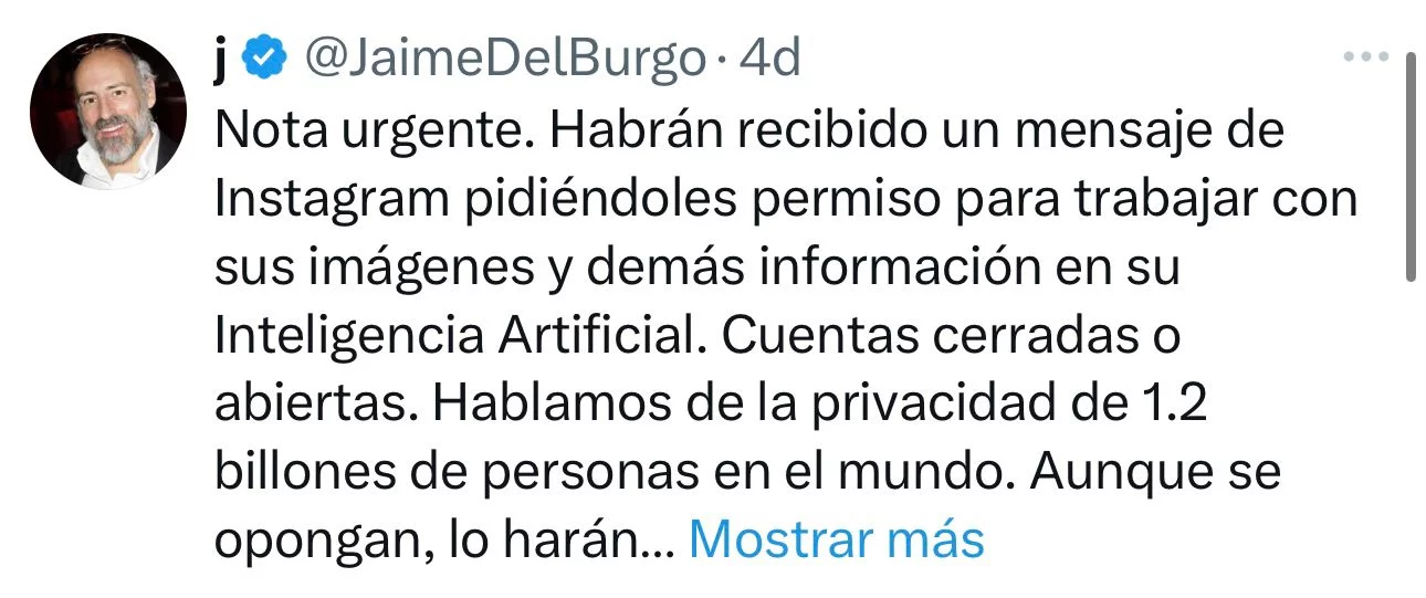 Recientemente, Jaime Del Burgo ha intentado justificar y explicar los motivos por los cuales borró los tweets y muchas de sus publicaciones, y esta vez le ha cedido la culpa a Mark Zuckerberg, CEO de Meta.
