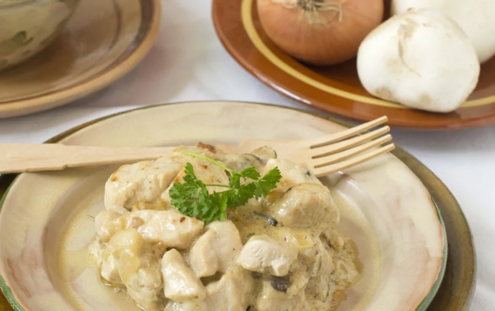 El pollo Strogonoff es una deliciosa y reconfortante receta que combina la suavidad del pollo con una cremosa salsa de champiñones. La clave de este plato está en la salsa, por lo que puedes sustituir el pollo por otro tipo de carne, e incluso algún tipo de proteína vegetal como seitán, tofu firme, soja texturizada u otro preparado veggie. A continuación, te explicamos paso a paso cómo preparar esta deliciosa receta para cuatro personas.