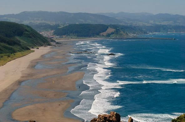 También en Asturias, el Playón de Bayas ofrece una extensión de arena que parece no tener fin. Es una de las playas más largas de la región y, a pesar de su tamaño, mantiene un ambiente sereno. El acceso es sencillo, con aparcamiento cercano y senderos que conducen a la playa. Es ideal para paseos largos, observación de aves y disfrutar del oleaje en un entorno que aún se mantiene relativamente virgen.