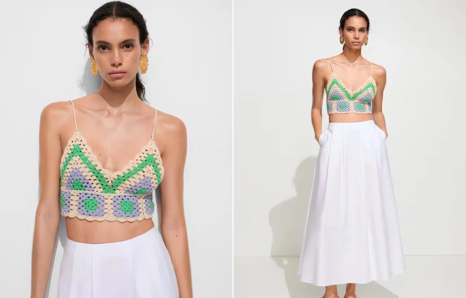 Este Top crochet combinado de MANGO tiene un precio de 25,99 Euros y será más fácil encontrarlo con su número de referencia: 77060362-DONKEY-LM. Dependiendo de tus medidas, puedes elegir entre estas tallas: S, M y L.