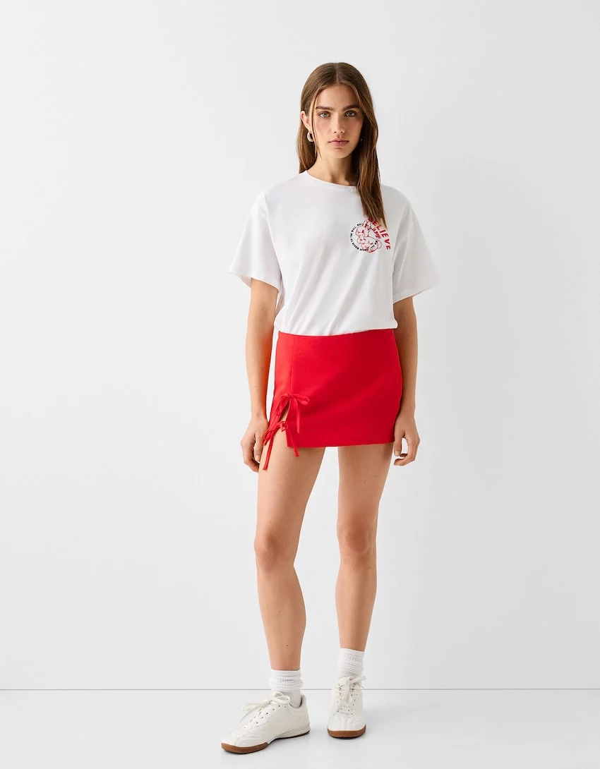 Este Top cropped lazado con lino color rojo de Bershka es una prenda que conserva el significado de estilo y mucha elegancia. Los eventos de moda y tus celebraciones te están esperando. Está compuesto por materiales de alta calidad: