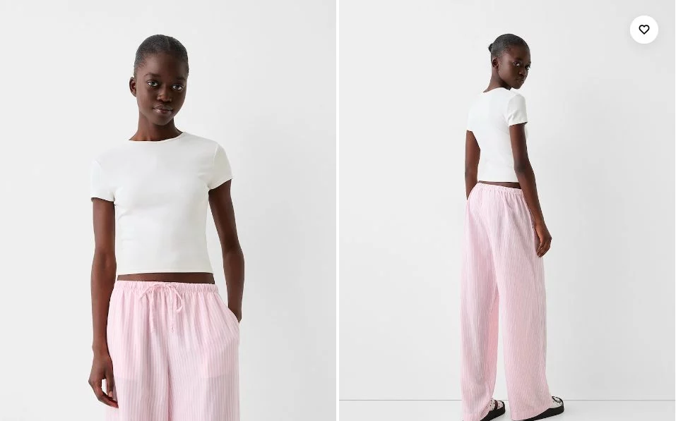 Puedes combinar esta prenda con una Camiseta manga corta cuello redondo color blanco de Bershka, al conservar este tono neutro, además de ofrecerte comodidad, puedes lograr combinaciones adecuadas para ese look que tanto quieres y disfrutar de un verano muy confortable. Esta camiseta tiene un precio de 5,99 Euros y puedes encontrarla fácilmente con su número de referencia: 2752/152/251. Dependiendo de tus medidas, puedes elegir entre estas tallas: XS, S, M, L y XL.