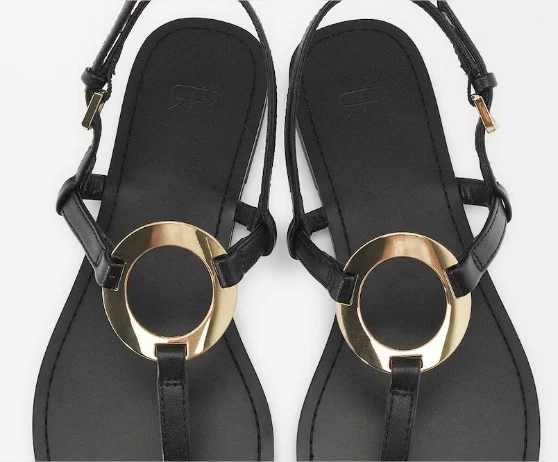 Las sandalias planas con detalle metálico y cierre de hebilla son la elección perfecta para quienes buscan un estilo sencillo pero con un toque de sofisticación. Su diseño en color negro y los detalles metálicos hacen de estas sandalias una opción elegante y moderna para cualquier ocasión veraniega.