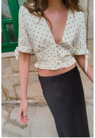 EL CUERPO CROPPED LUNARES CON LINO COLOR CRUDO / NEGRO de Zara tiene un precio de 22,95 Euros y será más fácil encontrarla con su número de referencia: 0387/073. Dependiendo de tus medidas, puedes elegir entre estas tallas: XS, S, M, L y XL.