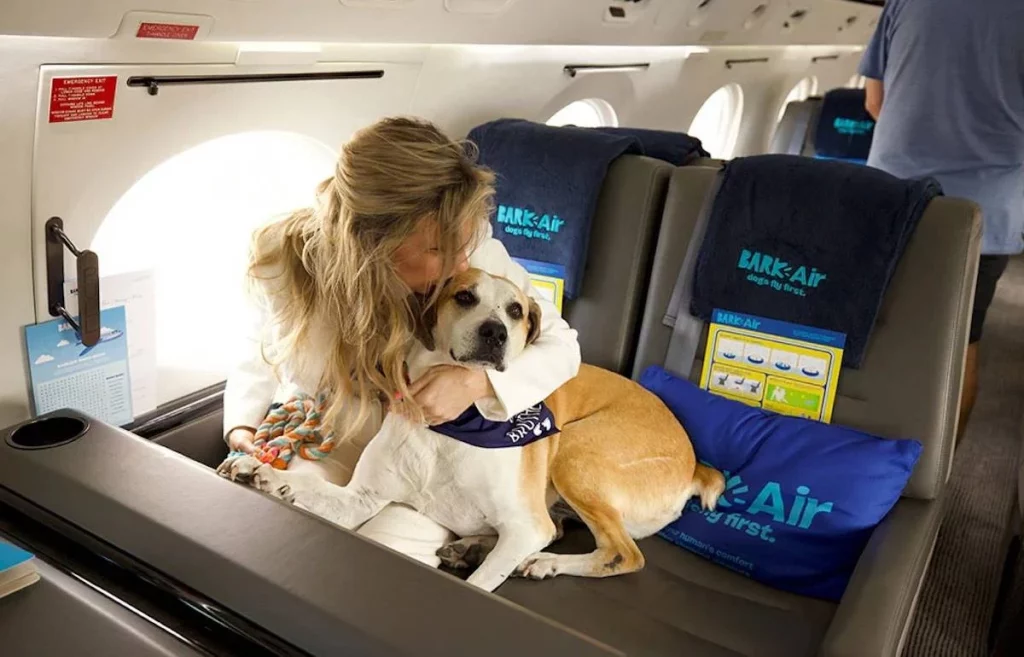 La aerolínea para perros Bark Air hizo su primer vuelo en mayo desde Los Ángeles a Nueva York. La aerolínea es la pionera en transportar únicamente mascotas junto a sus dueños ofreciendo un servicio de lujo para los caninos, que incluye comida de primer nivel y masajes.