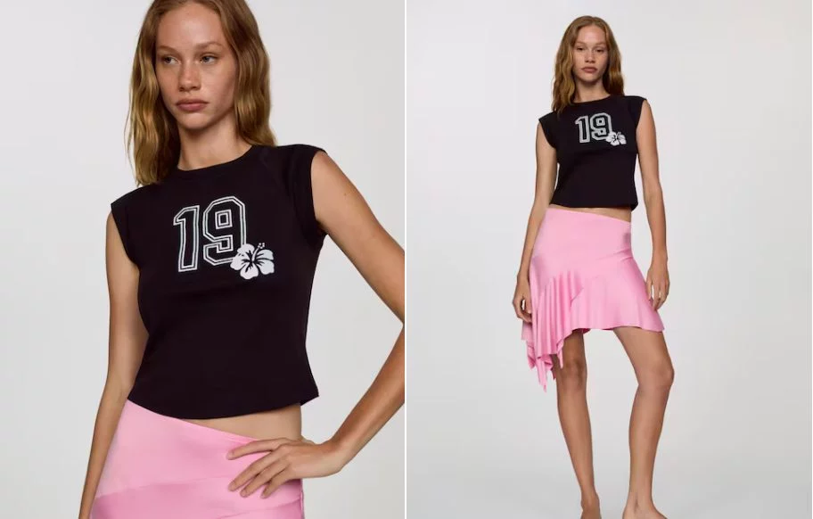 Puedes combinar esta hermosa falda con una Camiseta crop estampada color negro de MANGO. Diseño entallado. Diseño crop. Diseño estampado. Cuello redondo. Manga corta. Tiene un precio de 12,99 Euros y será más fácil encontrarla con su número de referencia: 67007940-MANILA-LM. Dependiendo de sus medidas, puedes elegir entre estas tallas: XS, S, M, L y XL.