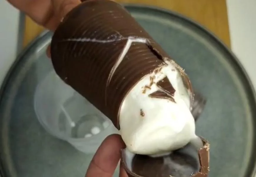 Una vez que el chocolate esté firme, retira el vaso de plástico con cuidado. Puedes cortarlo si es necesario para liberar el helado sin romperlo. Al retirar el vaso, te quedará una perfecta paleta de helado de chocolate con una cobertura crujiente y un interior cremoso. ¡Y lo mejor de todo es que lo has hecho sin moldes ni máquinas! Este método es ideal para disfrutar de un delicioso helado de chocolate en casa, especialmente en días calurosos o cuando simplemente quieres un postre rápido y fácil de preparar.