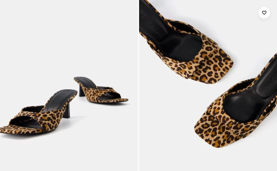 La Sandalia tacón kitten animal print de Bershka ofrece una altura tacón: 6 cm. AIRFIT®. Plantilla técnica flexible de espuma compuesta de látex, diseñada para ofrecer un mayor confort. Tiene las siguientes características que hacen único y novedoso a este tipo de calzado: