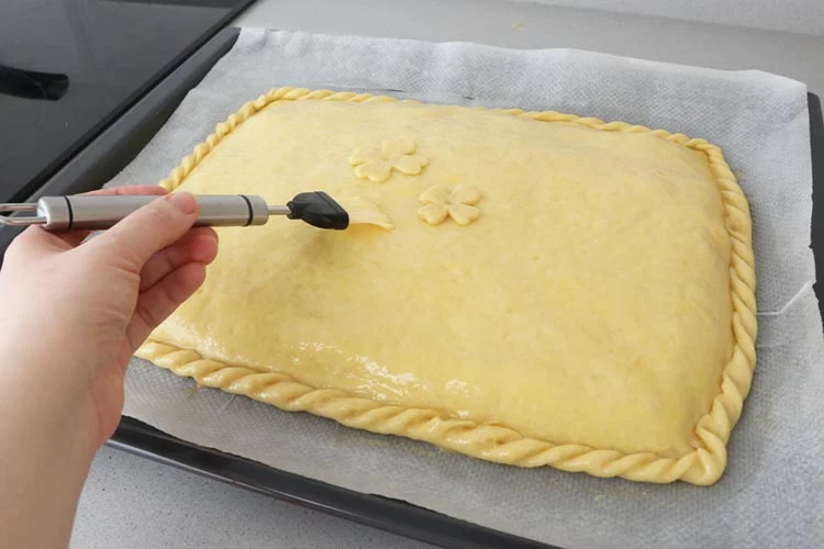 Una vez que la masa ha reposado y el relleno está listo, se procede a montar la empanada. Se estira la masa sobre una bandeja de horno, se coloca el relleno distribuido uniformemente y se cubre con otra capa de masa. Los bordes se sellan bien presionando con los dedos o usando un tenedor, y se hacen pequeños agujeros en la parte superior para dejar que salga el vapor durante la cocción.