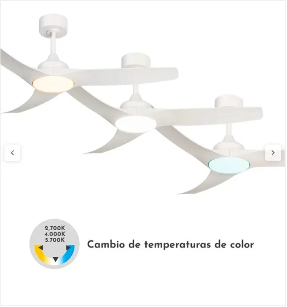 Además, son motores pequeños y duraderos. Incluye función reversible (invierno-verano), que consiste en invertir el giro de las aspas en invierno y mover hacia abajo el aire caliente acumulado en el techo, lo que permite mejorar el rendimiento de la calefacción y contribuir al ahorro energético en esta temporada de verano.