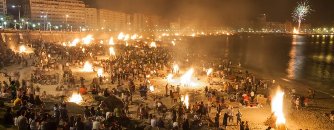Durante la noche del 23 al 24 de junio, las ciudades y pueblos de toda España se iluminan con hogueras, fuegos artificiales y festivales en las playas y plazas. Saltar sobre las hogueras es un ritual común, simbolizando la quema de lo viejo y la bienvenida a lo nuevo, un acto de purificación y renovación. En muchas regiones, es costumbre bañarse en el mar a medianoche para atraer la buena suerte y purificarse, aprovechando el poder mágico que se atribuye al agua durante esta noche especial.