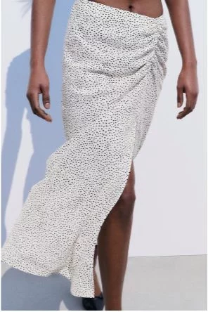 La FALDA MIDI LUNARES FRUNCES color CRUDO / NEGRO de Zara es una prenda muy elegante y exclusiva para usarla en un evento formal especialmente de noche y ser una de las invitadas más destacadas con los materiales tan impecables que componen esta oferta de Zara. Es una falda de tiro alto con frunces delanteros. Bajo con abertura frontal. Cierre en espalda con cremallera oculta en costura. Compuesto por:
