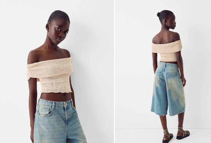 Una de las partes del cuerpo más sensuales y genera seguridad para algunas mujeres, son los hombros. Mostrar esta zona con elegancia y sentirte cómoda serán las razones para elegir una prenda adecuada y usarla en diferentes ocasiones. Bershka tiene para ti un top con un material exclusivo, permitiéndote combinar con otros complementos muy oportunos y crear un look inolvidable para este verano. Con estilo sofisticado y a su vez clásico, te sentirás lista para lucir muy bella tanto en un evento informal o actividad cotidiana, en su defecto, en un evento mucho más discreto combinando con prendas alusivas al mismo y destacando la elegancia que transmites con cotidianidad.