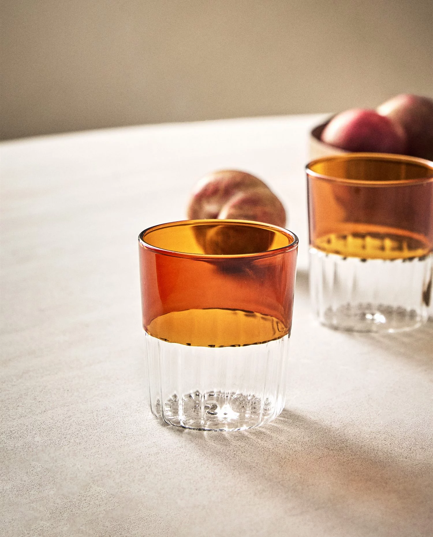 Los cuartos son estos originales vasos de vidrio con líneas de colores. Unos vasos muy veraniegos que cuentan con una capacidad de 350 ml. Pueden quedar genial con un mantel blanco o estampado con diversos colores que será perfecto para cualquier comida o cena de verano al aire libre. Unos divertidos vasos de colores cuentan con unas medidas de 9.5 cm. de alto, 4,5 cm. de ancho y 9 cm. de fondo. Estos vasos 100% vidrio se pueden encontrar en la web de Zara Home a un precio de 7,99 euros.