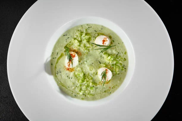 La preparación de este gazpacho no podría ser más simple, solo requiere unos 3 minutos. Primero, tritura los pepinos junto con el zumo de limón, el queso crema o el yogur, la albahaca, la rúcula, el aceite de oliva, la sal y los cubitos de hielo. El uso del hielo no solo ayuda a enfriar el gazpacho rápidamente, sino que también le da una textura más suave y agradable. Una vez que todo esté bien mezclado y triturado, estará listo para servir.