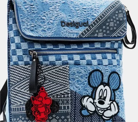 Mochila mediana en azul denim con detalle fantasía