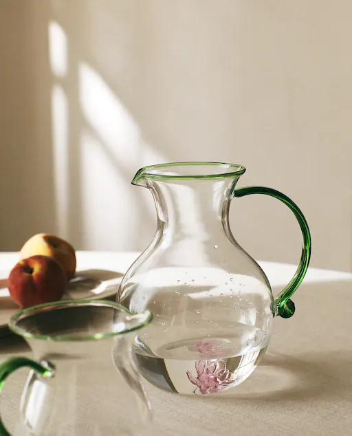 Entre todos los productos rebajados de Zara Home hemos elegido 7 que nos han parecido un artículo práctico para el verano y, además, está a un buen precio. Por ejemplo, esta jarra de borosilicato, transparente, con asa y filo en color a contraste y detalle de flor de loto en el interior,