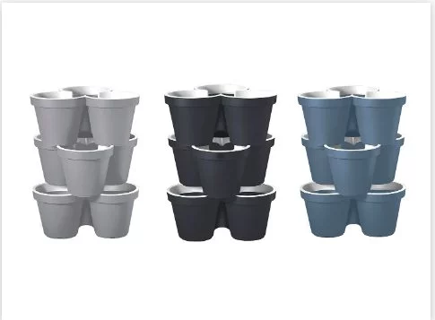 - No apilar más de 3 macetas una encima de otra. Llenar uniformemente cada una de las macetas. Sin soporte, aptas solo para exteriores.