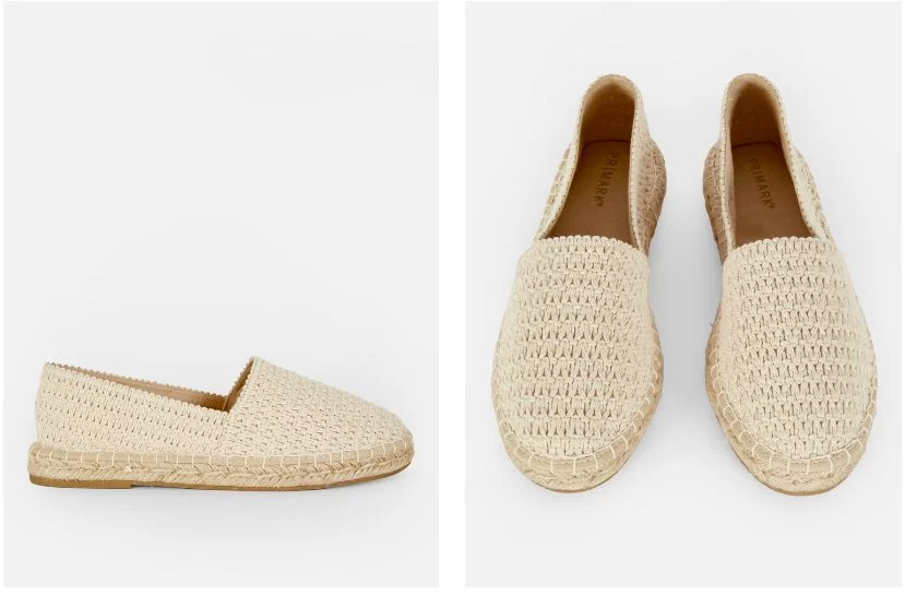Las Alpargatas de punto de ganchillo color beige de Primark son muy adecuadas para usarlas en ocasiones en donde quieres sentirte fresca pero a su vez elegante. De hecho, la princesa Carolina de Mónaco recientemente usó unas alpargatas planas junto a unos pantalones culotte de lino y una camisa a rayas roja. Estos zapatos son talla de modelo: L Shoe 6 y no tienen ninguna fijación.