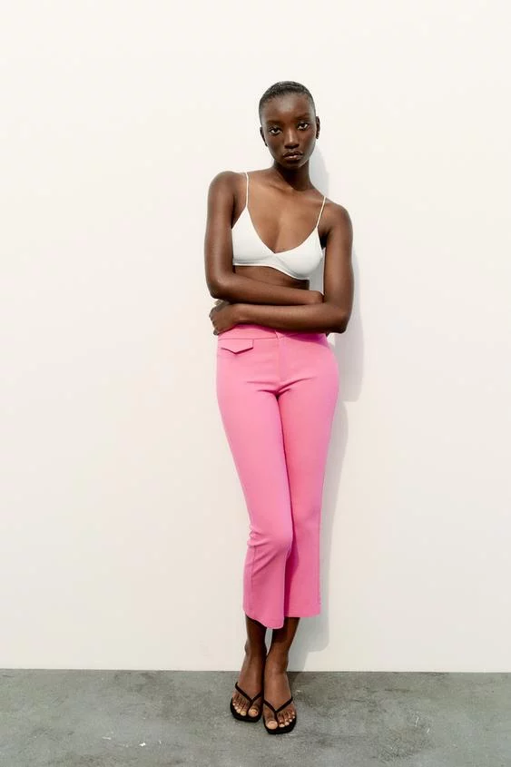 La quinta prenda que hemos elegido es este top entallado fucsia de escote cuadrado y manga sisa. Forro interior combinado a tono. Destaca su cierre lateral con cremallera oculta en costura.