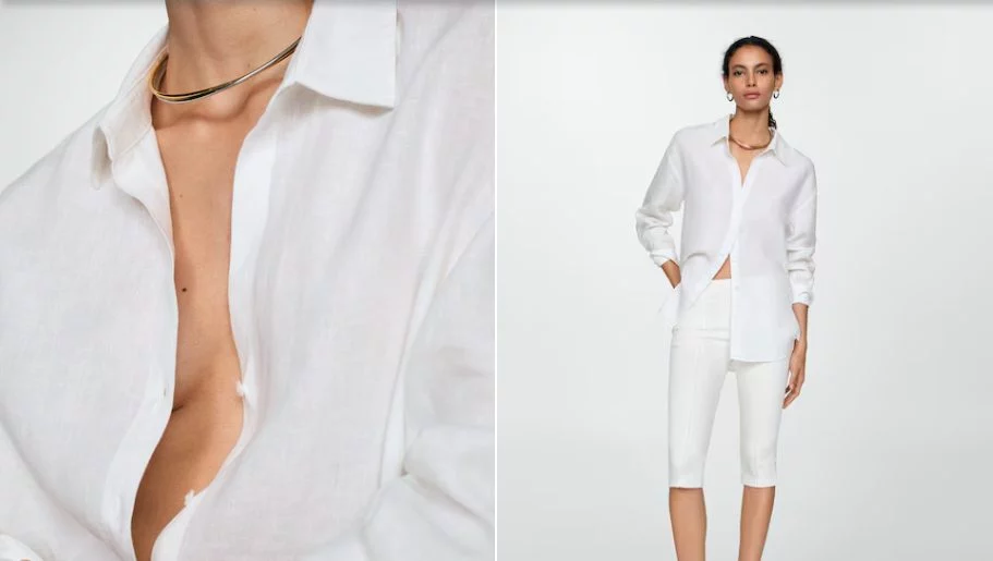 Puedes combinar estos cómodos y sofisticados shorts con la Camisa 100% lino manga larga color blanco de MANGO que ofrece un diseño oversize. Cuello camisero. Manga larga con puños abotonados. Cierre delantero con botones. Esta camiseta tiene un precio de 39,99 Euros y la encontrarás fácilmente con su número de referencia: 77020352-SAMARI-LM. Dependiendo de tus medidas, puedes elegir entre estas tallas: XXS, XS, S, M, L, XL Y XXL.