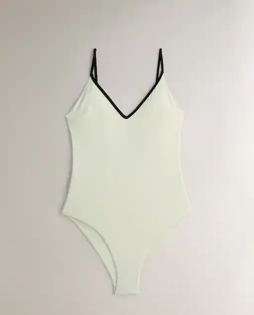 El primer bañador en el que nos hemos fijado es este de playa en color liso con escote y tirante asimétricos, y detalle de drapeados. Nos encanta su favorecedor estilo y su toque moderno. Un bañador asimétrico que es una de las tendencias de este verano 2024 y que se puede encontrar en la web de Zara Home en tallas de la S a la L y a un precio rebajado en las tres tallas de 19,99 euros en vez de 29,99 euros, un descuento del 50%.