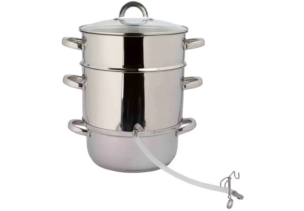 Las dimensiones de este exprimidor a vapor son aproximadamente 26 x 29 cm (Ø x A), y su peso es de unos 2,8 kg, lo que lo hace lo suficientemente compacto y ligero para ser manejado fácilmente en la cocina. Está fabricado en acero inoxidable, un material conocido por su resistencia y durabilidad, lo que asegura que este exprimidor te acompañará en la creación de tus zumos favoritos durante muchos años. Además, es apto para todo tipo de fuegos, incluyendo los de inducción, y se puede lavar en el lavavajillas, lo que facilita su limpieza y mantenimiento.