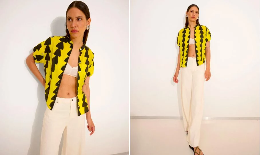Puedes combinar esta camisa con el PANTALÓN FLUIDO CON CINTURA ELÁSTICA color blanco de Parfois, es un Pantalón fluido confeccionadas en tejido de punto. Cintura elástica. Compuesto por: 89% Viscosa y 11% Poliamida. Una prenda muy apropiada, ya que contrasta convenientemente con los exclusivos colores de la camisa estampada y ofrece una óptima comodidad al usarla. El pantalón tiene un precio de 29,99 Euros y será más fácil encontrarlo con su número de referencia: 218775. Dependiendo de tus medidas, puedes elegir entre estas tallas: XS/S y M/L.