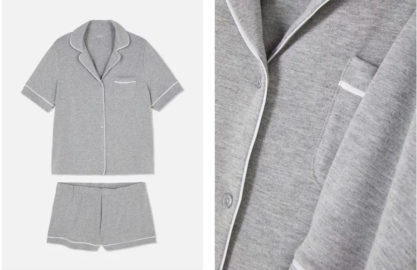 Además, está la Pijama de punto de manga corta de Primark color Grey Marl, una prenda clásica y cómoda. Compuesta de 65 % poliéster, 33 % viscosa y 2 % elastano. Tiene un precio de 15 Euros y la encontrarás fácilmente con su número de referencia: 991088782720. Dependiendo de tus medidas, puedes elegir entre estas tallas: 34/36, 38/40, 40/42, 44/46 y 48/50.