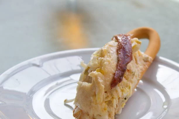 La presentación de esta ensaladilla rusa es lo que realmente la distingue y la ha hecho viral. La ensaladilla se sirve sobre rosquillas, un toque único que le da un carácter especial. Para asegurarse de que la rosquilla no se rompa al morderla, se coloca la ensaladilla en la parte de la unión de la rosquilla. Este ingenioso método ha sido apodado «bicicleta murciana». Si se añade una anchoa, se convierte en una «marinera», y si se prefiere un boquerón en vinagre, se llama «marinero». Para los más osados, la combinación de anchoa y boquerón da lugar al «matrimonio».