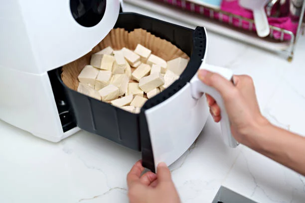 El tofu firme destaca por su alto contenido en proteínas y nutrientes, lo que lo hace ideal para cocinar en la freidora de aire. Para usarlo en la freidora de aire, es crucial escurrir el agua adecuadamente. Envuelve el tofu en papel de cocina, colócalo entre dos superficies firmes y aplica un peso moderado. Cambia el papel de cocina periódicamente hasta que el tofu esté prácticamente seco.