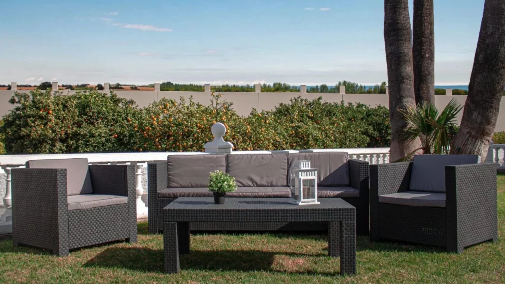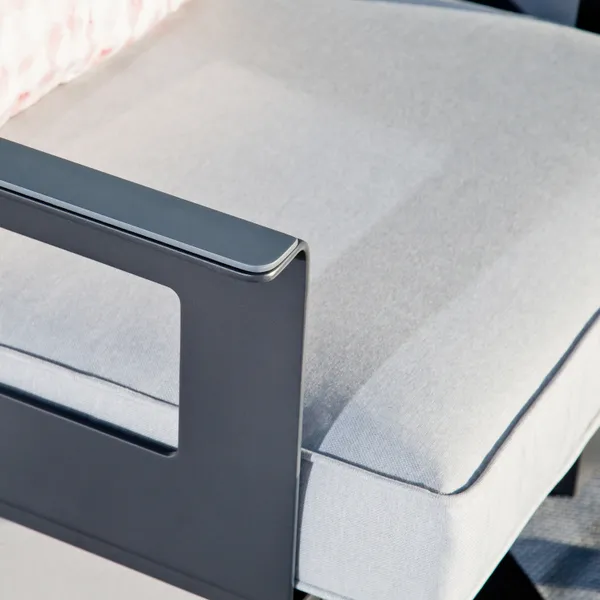 Un diseño angular: Los muebles de jardín Leroy Merlin y de Odyssea, se destacan por sus líneas refinadas y su color antracita, que añade un toque moderno y acogedor a tus espacios exteriores, ya sea al aire libre o bajo la pérgola. Las patas y reposabrazos con forma de “U” refuerzan el estilo geométrico y de diseño del conjunto, aportando un aspecto elegante y contemporáneo. Combinar este conjunto con la Pérgola Odyssea asegura una armonía visual perfecta, creando un ambiente sofisticado y acogedor para disfrutar de momentos relajantes en tu jardín o terraza.