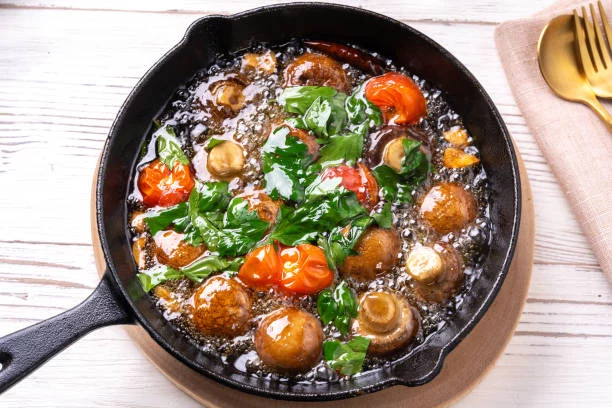 Una vez que los vegetales están listos, se colocan en un recipiente que soporte alta temperatura. Paralelamente, se calienta aceite de girasol en una cacerola hasta alcanzar el punto de fritura a 170° C. Cuando el aceite está caliente, se añaden los ajos laminados y se dejan freír por un minuto hasta que estén apenas dorados. Este paso es crucial para infundir el aceite con el sabor característico del ajo, que será el ingrediente estrella de los vegetales al ajillo.