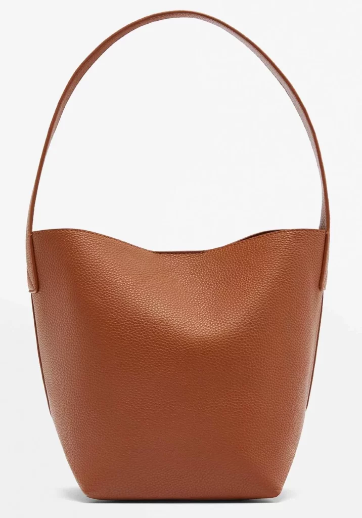 Otro de los elegantes diseños que destacan en las rebajas de Lefties es este bolso saco texturizado, disponible en tres colores diferentes. Fabricado en piel sintética con textura arrugada y forma cilíndrica, este bolso cuenta con un asa de gran tamaño del mismo material, proporcionando estilo y funcionalidad a un precio reducido durante esta temporada de rebajas.