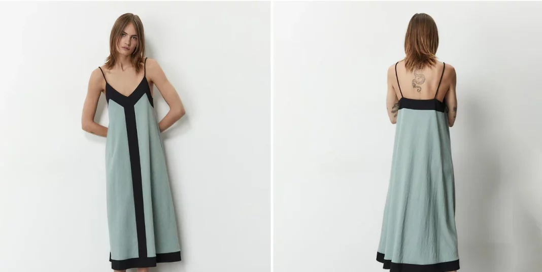 Finalmente, un vestido muy versátil y fresco, es el vestido midi verde pato de Sfera compuesto de 50 % Poliamida y 50 % Viscosa. Es el vestido indicado para llevarlo a un evento formal o informal, y sentirte totalmente fresca. Tiene un precio de 25,99 Euros y será más fácil encontrarlo con su número de referencia: 001056262107032. Dependiendo de tus medidas, puedes elegir entre estas tallas: S, M, L y XL.
