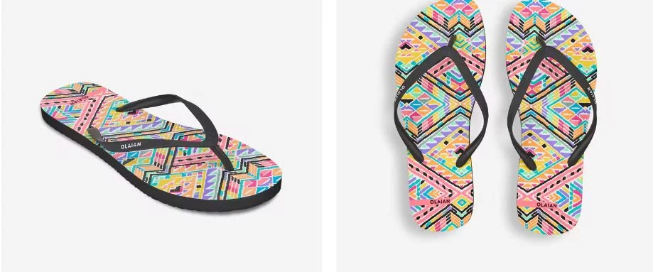 Las Chanchas de playa OLAIAN para mujer de Decathlon, compuestas de Suela exterior de 100% Acetato de etileno y vinilo Superior de 100% Cloruro de polivinilo. Son ligeras, tienen una suela blanda, correa de plástico con entrededos de plástico. Además, cuentan con una suela de capa, resistencia al desprendimiento de entrededos forzada y su tiempo de secado es súper eficaz, sólo tardará 10 minutos. Este proceso se constató en un laboratorio a 23 grados.