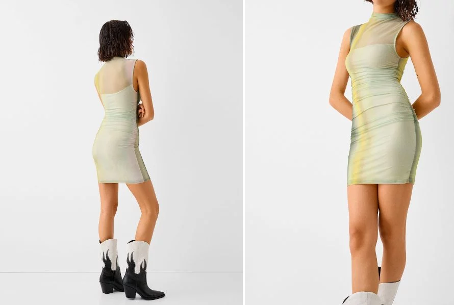 El Vestido mini cuello subido sin mangas print de Bershka tiene un precio de 9,99 Euros y será mucho más fácil encontrarlo con su número de referencia: 0649/360/520. Dependiendo de tus medidas, puedes elegir entre estas tallas: XS, S, M y L.