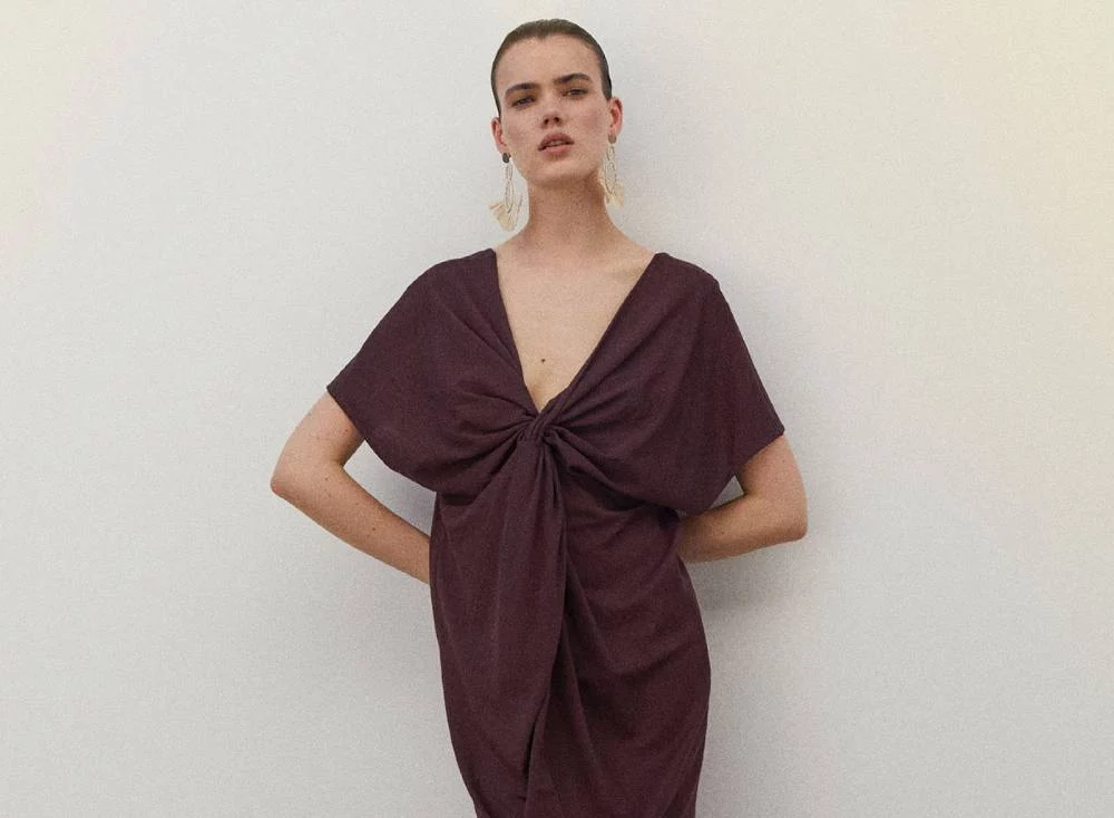 Se trata del diseño túnica color terracota con un nudo en el centro. Esta variante da un toque de sofisticación y elegancia que se puede combinar con tacones y accesorios grandes. Pero si el evento es más informal también se puede usar esta alternativa con sandalias planas para una tardecita en la terraza con un aperitivo. Este vestido se suma a las rebajas de verano y cuesta apenas 19.99 euros.