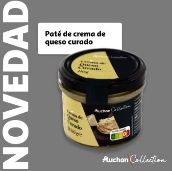 Este nuevo producto de Alcampo es un Paté de crema de queso curado con un valor de 1,79 los 110 gramos de producto. Esta exquisita preparación novedad pertenece a la línea Auchan Collection, ofreciendo estos ingredientes está la leche en polvo rehidratada, el queso curado (17,5%), harina de arroz, aceite de oliva virgen extra, sal y aroma.