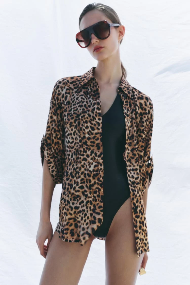 Os vamos a hablar de estos pantalones anchos de print de leopardo confeccionado en algodón 100% y que destacan por su tiro alto, pernera recta y bajo evasé. Pero también, de otras prendas con este estampado que están de moda este verano. ¡No te las pierdas y marca estilo con el estampado animal.
