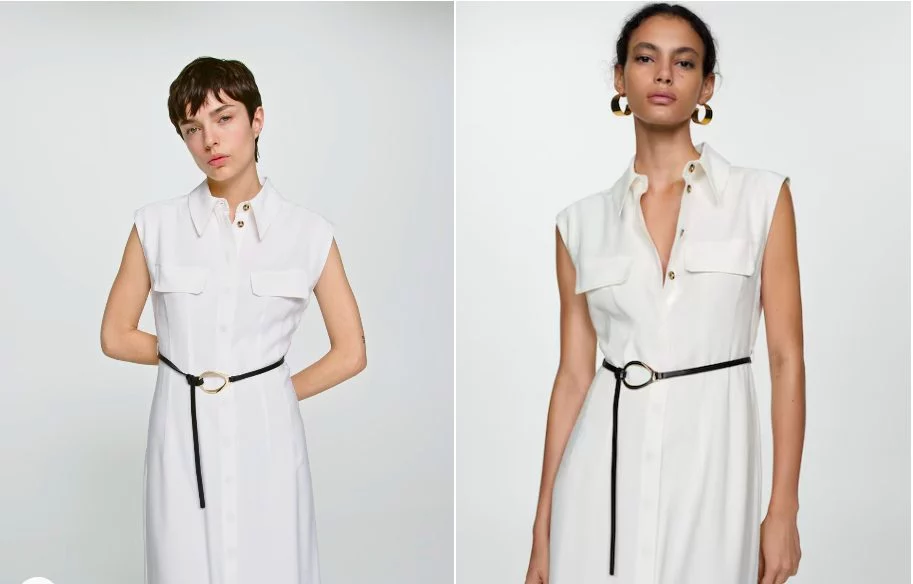 Finalmente, puedes encontrar el vestido camisero cinturón de MANGO, que sin duda es un vestido muy particular gracias a sus accesorios y su versatilidad para usarlo en eventos formales o informales. Está compuesto desde un diseño midi. Diseño recto. Cuello camisero. Sin mangas. Dos bolsillos de solapa en el pecho. Trabillas. Cierre de botones oculto en la parte delantera. Cinturón desmontable. Costuras decorativas. Fabricado a base de 93% viscosa. 7% poliéster. Cinturón: 100% poliuretano.