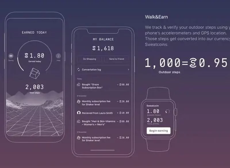 Otra de las aplicaciones más usadas para ganar dinero por caminar es Sweatcoin, una aplicación que permite rastrean los pasos al inicio del día y, cada 1.000 pasos, recompensa con su monedas «Sweatcoin», que se pueden canjear por una gran cantidad de productos y servicios que ofrece la plataforma, y que van desde productos electrónicos hasta cupones de descuento.